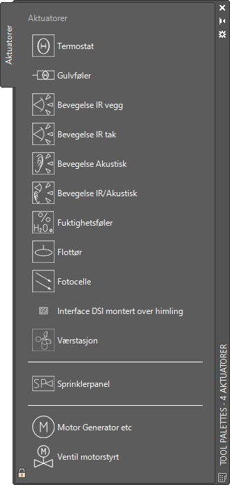 Aktuatorer er lys-, fuktighet- og varme-følere. Symbolene blir satt inn på aktivt lag.