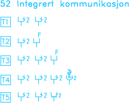Symbolene for kommunikasjonsnett «T» og «Tn» kan benyttes der det er behov for flere uttak på samme sted (for å spare plass på tegningen). «Kommunikasjonsnett forklaring» kan redigeres etter behov.